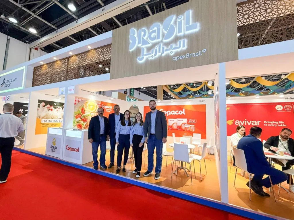 Nesta edição, a ABPA e a ApexBrasil reúnem 22 agroindústrias brasileiras em um estande exclusivo de 432 metros quadrados, projetado para apoiar agendas comerciais, promover encontros com importadores e distribuidores e fortalecer a imagem institucional do setor. Um dos destaques é o espaço de degustação, com pratos como shawarma de frango, shawarma de pato e omeletes, evidenciando a versatilidade da proteína animal brasileira e sua adequação aos hábitos de consumo da região.